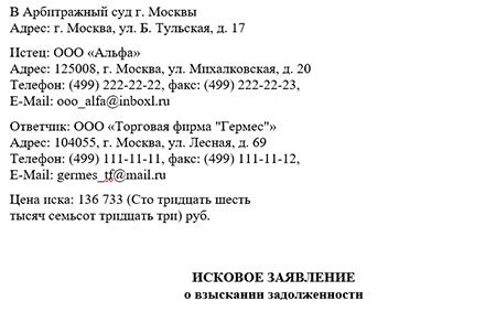 Подача заявления в арбитражный суд